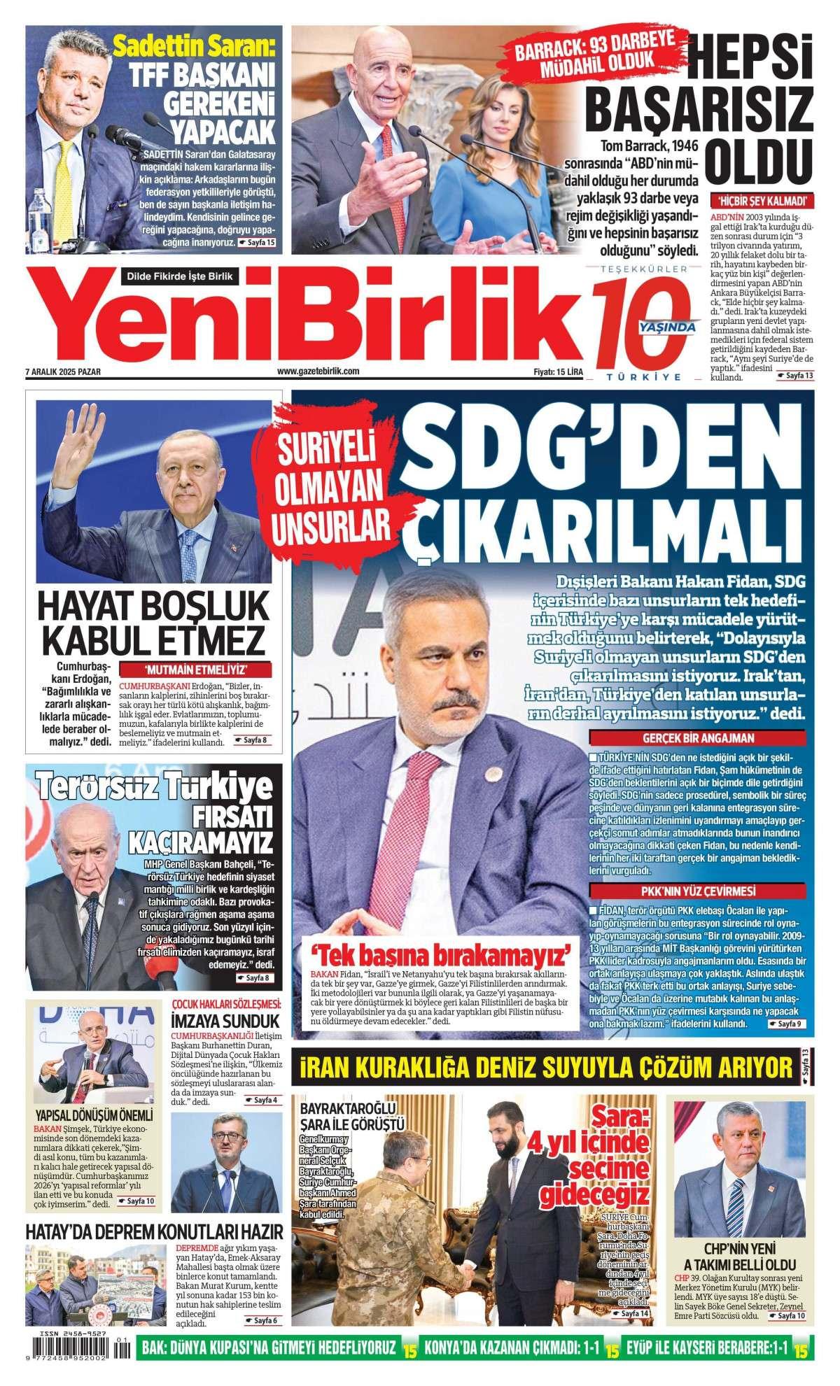 Yeni Birlik Gazetesi 7 Aralık 2025 Günü Manşeti